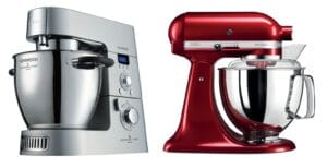 Le match Kitchen Aid artisan/Kenwood Titanium est surtout un bras de fer de marque. Si vous avez les moyens, vous ne le regretterez pas c’est sûr. Mais ce sont loin d’être des indispensables pour la maison et d’autres marques moins réputées font de très bons robots. J’ajouterais qu’il est plus pratique selon moi d’avoir un robot moyenne gamme avec beaucoup d’accessoires (par exemple 2 bols, une feuille souple) que d’avoir un très beau robot et d’être obligé de grouper anniversaire + noël + fête de parent pour s’offrir le moindre fouet (oui, on est tous pareils ^^). Posez-vous aussi la question de savoir quels seront vos projets après le CAP ? Si c’est pour faire une brioche le dimanche ou si vous montez votre affaire, le budget à y mettre et la puissance requise ne seront pas les mêmes.